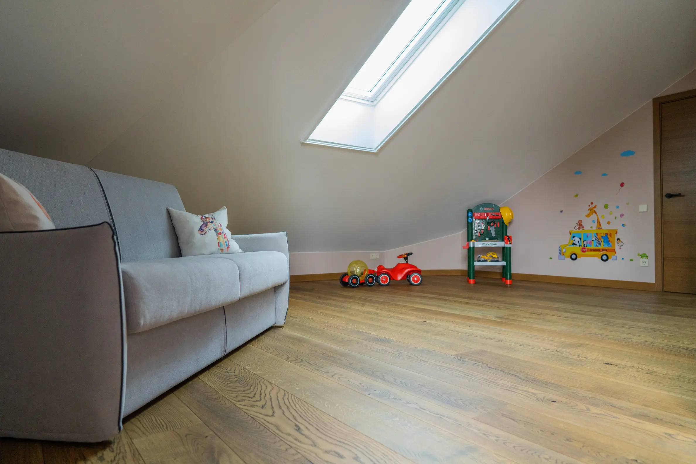 Тришаровий паркет вищої якості з дуба від виробника BOEN, з додатковою тепло- та звукоізоляцією.